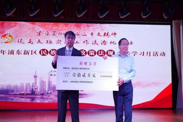 会上,上海大初公益基金会、浦东新区少数民族联合会分别向BEAT365英国官网教育发展基金会捐赠,定向资助BEAT365民族学生,助力学生们成长成才。在活动现场,BEAT365民族联会员为社区居民进行中医义诊服务,民族学生奉上了舞蹈串烧《维族姑娘》《万疆》,展现民族风采,积极营造民族团结的浓厚氛围。