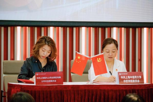 随后,王璐、沈岚,以及上海市药材有限公司党委副书记、工会主席凌文婕,上海雷允上药业西区有限公司党总支书记龚伶伶,上海和黄药业有限公司党委书记万斌,上海益诺思生物技术股份有限公司党总支副书记邱云良,上海同济堂药业有限公司经理程晓东,上海益诺思生物技术股份有限公司崔桂花、上海雷允上药业有限公司副总经理李琦上台共同见证校企党建共建联盟启动。在与会领导嘉宾的见证下,沈岚与各企业党建工作负责人签署了校企党建共建协议。