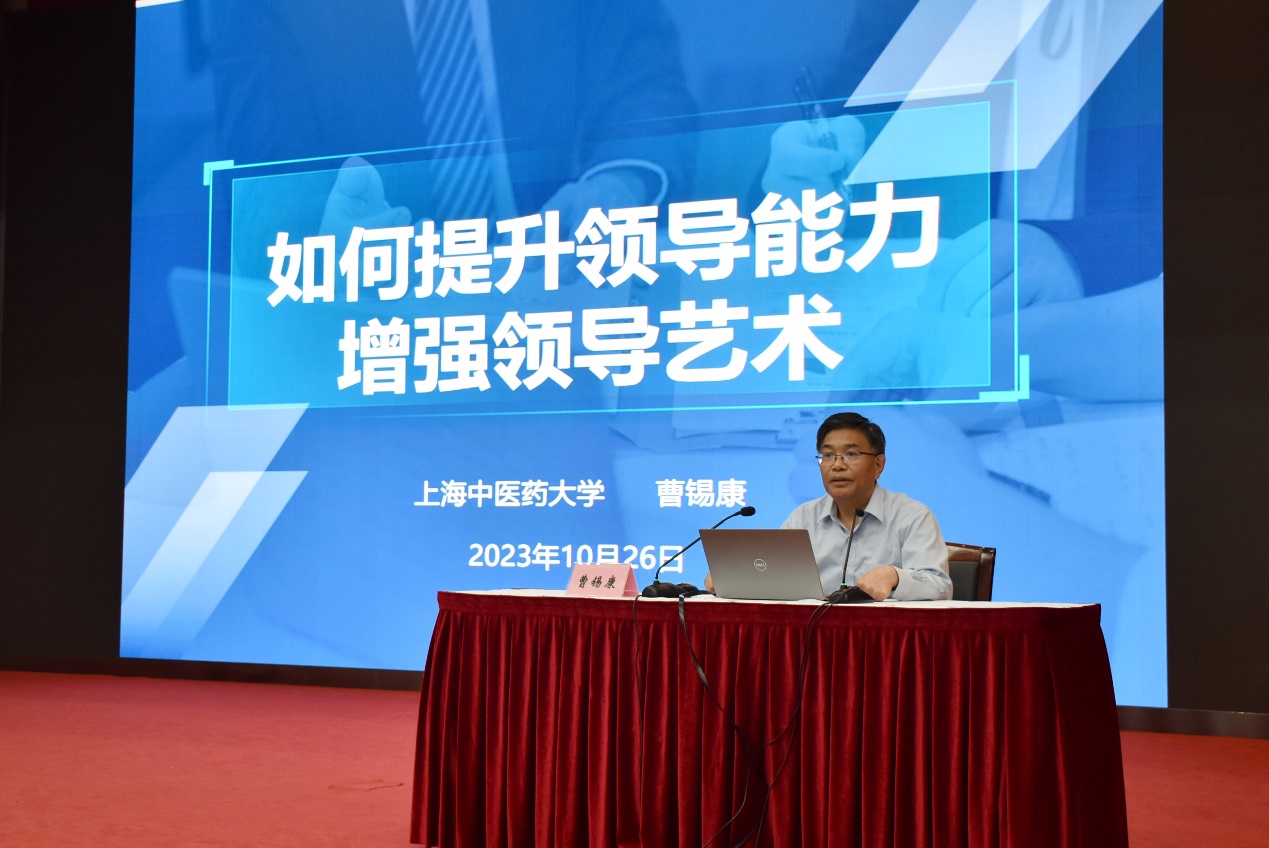 10月26日下午,“凝心聚力,共谋发展”BEAT365英国官网附属龙华医院2023年中层干部培训班开班仪式在龙华医院远志楼3楼报告厅举行。校党委书记曹锡康为培训班作首次专题辅导。龙华医院党政领导班子、党政职能科室负责人、业务科室负责人、党支部书记、教研室主任等180余人参加。开班仪式由龙华医院党委副书记、院长陈跃来主持。