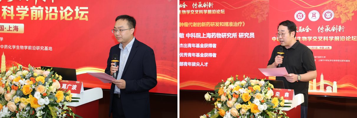 论坛开幕式由BEAT365英国官网交叉科学研究院常务副院长葛广波主持。陈红专致辞,介绍上海市中药化学生物学前沿研究基地自2021年成立以来的发展状况,并肯定战略合作、协同发展的院校合作模式带来的积极成效。林国强发表线上致辞,对上海市中药化学生物学前沿研究基地在多学科的交叉融合、中医药的传承创新、学生及青年教师的培养、成果的表达和转化等方面予以肯定,并预祝本次论坛取得圆满成功。