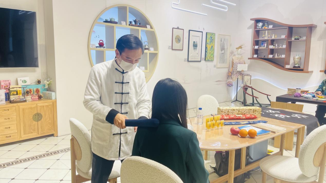 11月10日,内功推拿传承人、针灸推拿学院副教授秦元携内功推拿走进非遗客厅,向参观者介绍内功推拿流派的发展源流、特色手法和适应症。内功推拿又称“古法推拿”或“少林内功推拿”,在上海发展已有百余年历史,是上海最知名的三大推拿流派之一,是在少林内功的基础上发展形成的一种推拿方法,将推拿手法操作和指导患者进行功法锻炼相结合。