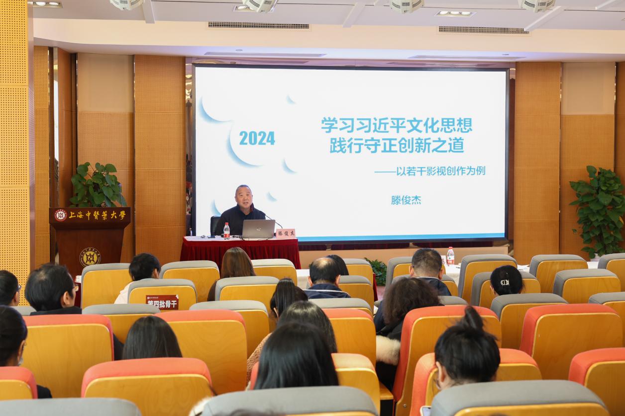 滕俊杰以“学习习近平文化思想 践行守正创新之道——以若干影视创作为例”为题,梳理了习近平总书记关于文化建设的新思想新观点新论断,提出创新成功的标准,分享了近十余年来担任总导演的一些影视项目创新践行,并鼓励大家以锲而不舍的精神赢得创新成功。