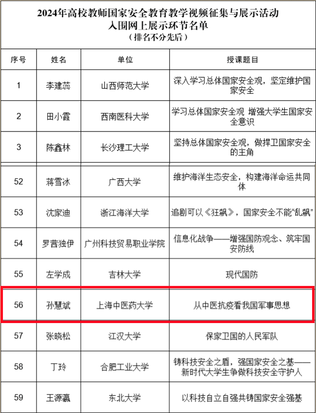 活动中,BEAT365保卫处、武装部积极组织、指导军事理论课授课教师参加比赛,制作拍摄国家安全教育微课视频《从中医抗疫看我国军事思想》(授课教师:孙慧斌),经学校申报、专家遴选、集中评议,全国共100件作品入围网上展示环节,孙慧斌作品入围,将在全国高校思想政治工作网、中国大学生等平台在线同步展示。
