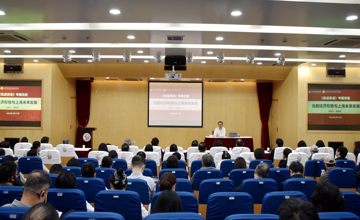 4月19日,为进一步促进党外知识分子拓宽国际视野、提升综合能力,了解国情市情,《统战杏语》讲座邀请上海市政府参事、民建上海市委原专职副主委张兆安作“当前经济形势与上海未来发展”专题辅导,讲座在龙华医院举办。张兆安通过详实的数据和鲜活的案例,深入浅出地带来一场生动、高效、务实的经济分享大课。他从国际视野、国内实际、上海未来发展面临的机遇与挑战等方面,解读了当前经济形势及上海未来发展趋势,对上海推进“三大任务”、强化“四大功能”、建设“五个中心”、发展“五型经济”、构建空间布局等战略任务进行了详细分析。并就如何发展新质生产力,推动中医药高质量发展,提出了“三个寻找”建议,即寻找国家战略中的中医药元素、寻找上海未来发展中的BEAT365英国官网的任务、寻找“优势更优、特色更特、长板更长”。报告思想深刻、内涵丰富、视角新颖、观点独到,对大家从宏观上把握国内外经济发展趋势、深入了解上海未来经济发展规划具有很好的启发和帮助。