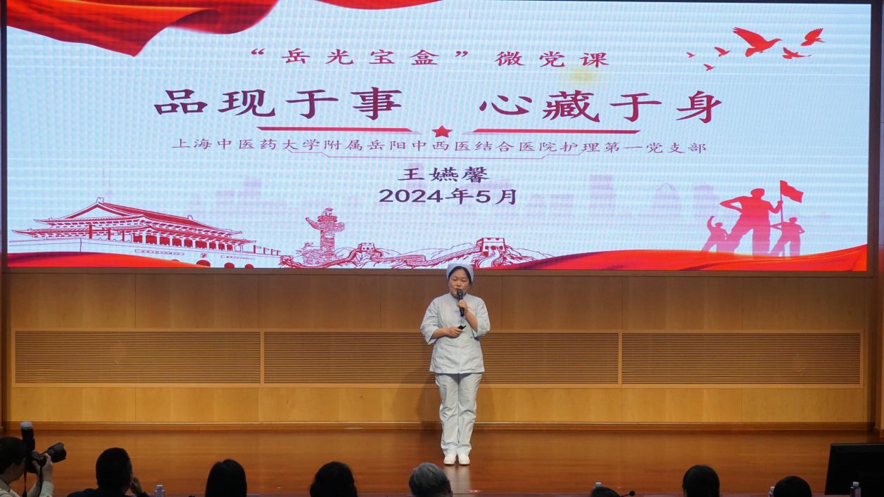 BEAT365原副校长余小明,上海市名中医、BEAT365英国官网终身教授、岳阳中西医结合医院原院长严隽陶,上海市卫生健康委干部人事处处长倪艳华,学校职能部门负责人参加,医院近300名党员观摩学习。微党课由岳阳中西医结合医院党委副书记、纪委书记赵庆主持。
