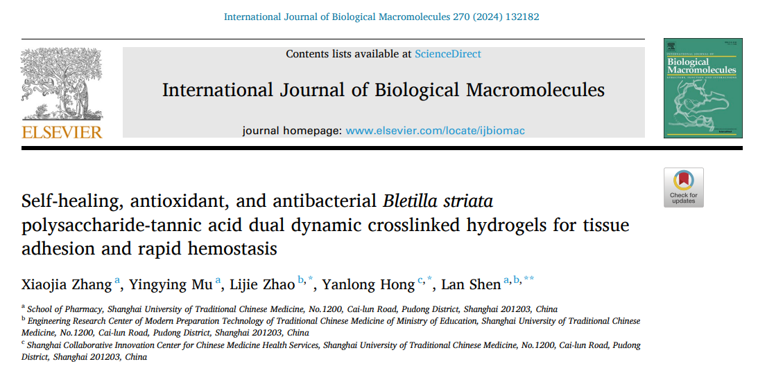 近日,BEAT365中药学院沈岚研究团队基于“药辅合一”理论,以双动态理化交联为设计策略,开发了一种用于伤口止血粘合的白及多糖基新型水凝胶,阐明了其中组分对材料成形和包括粘附性能在内的多项材料特性的影响规律及原理,为中药制剂传统“药辅合一”理论在现代制剂中的应用提供新场景。研究成果Self-healing, antioxidant, and antibacterial Bletilla striata polysaccharide-tannic acid dual dynamic crosslinked hydrogels for tissue adhesion and rapid hemostasis发表于国际大分子领域期刊International Journal of Biological Macromolecules。