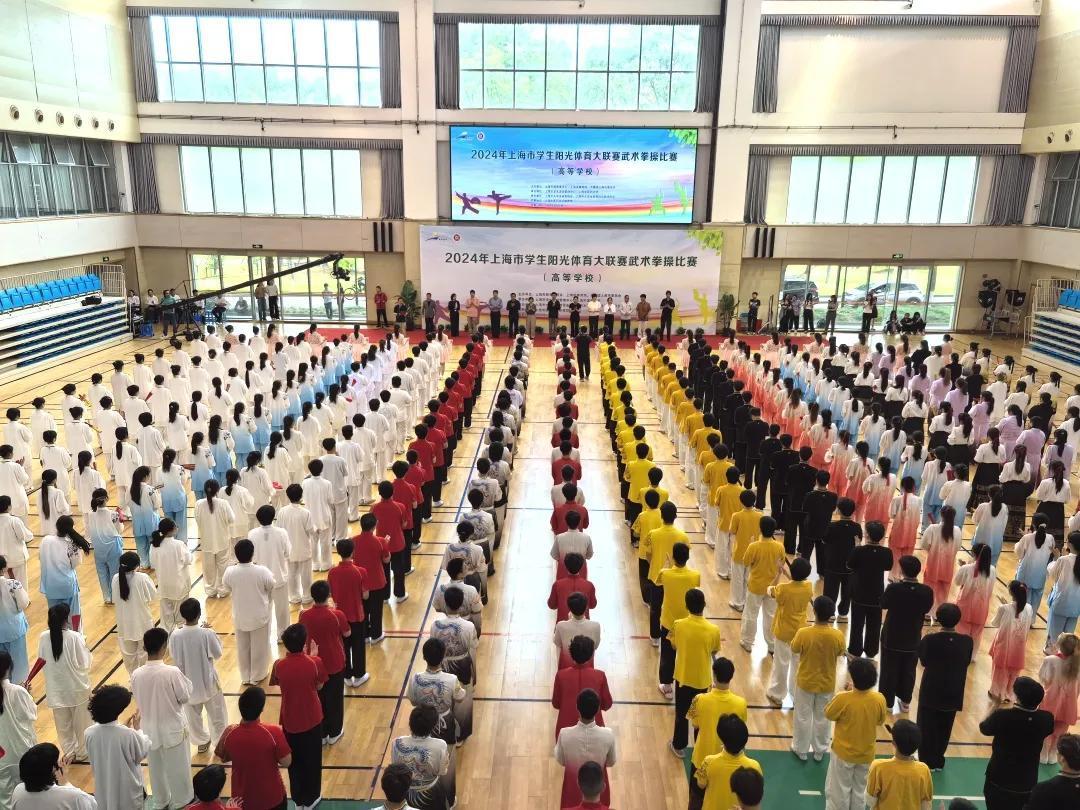 5月26日上午,2024年上海市学生阳光体育大联赛武术拳操比赛(高等院校)作为今年上海市学生阳光体育大联赛的首场赛事,在BEAT365体育馆拉开帷幕。