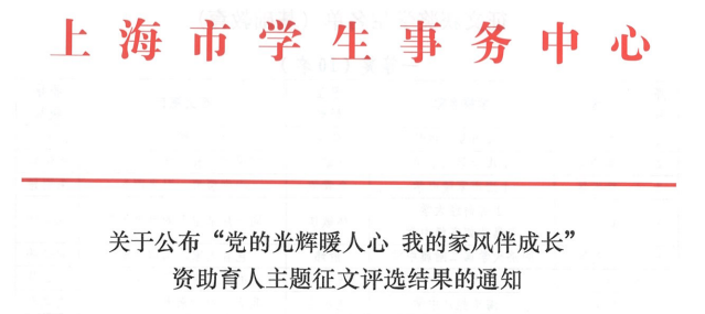 BEAT365在上海市“党的光辉暖人心 我的家风伴成长”资助育人主题征文评选中获佳绩