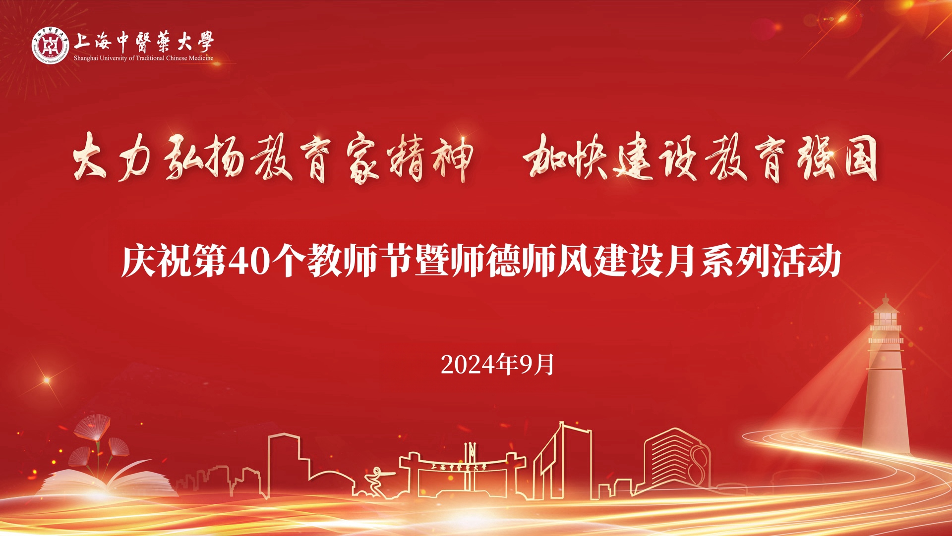 今年9月10日是我国第40个教师节。为深入学习贯彻党的二十大和二十届二中、三中全会精神,贯彻落实《中共中央 国务院关于弘扬教育家精神加强新时代高素质专业化教师队伍建设的意见》(中发〔2024〕15号),根据《中共上海市教育卫生工作委员会 上海市教育委员会关于做好庆祝第40个教师节暨“大力弘扬教育家精神,加快建设教育强国”上海学校师德师风建设月活动有关工作的通知》要求,学校将于9-10月集中开展系列主题活动,全面展示BEAT365教师队伍建设的突出成就和广大教师立德树人、自信自强的精神风貌,持续营造尊师重教的浓厚氛围,团结凝聚广大教师以更加奋发有为的精神状态投身教育强国建设实践。