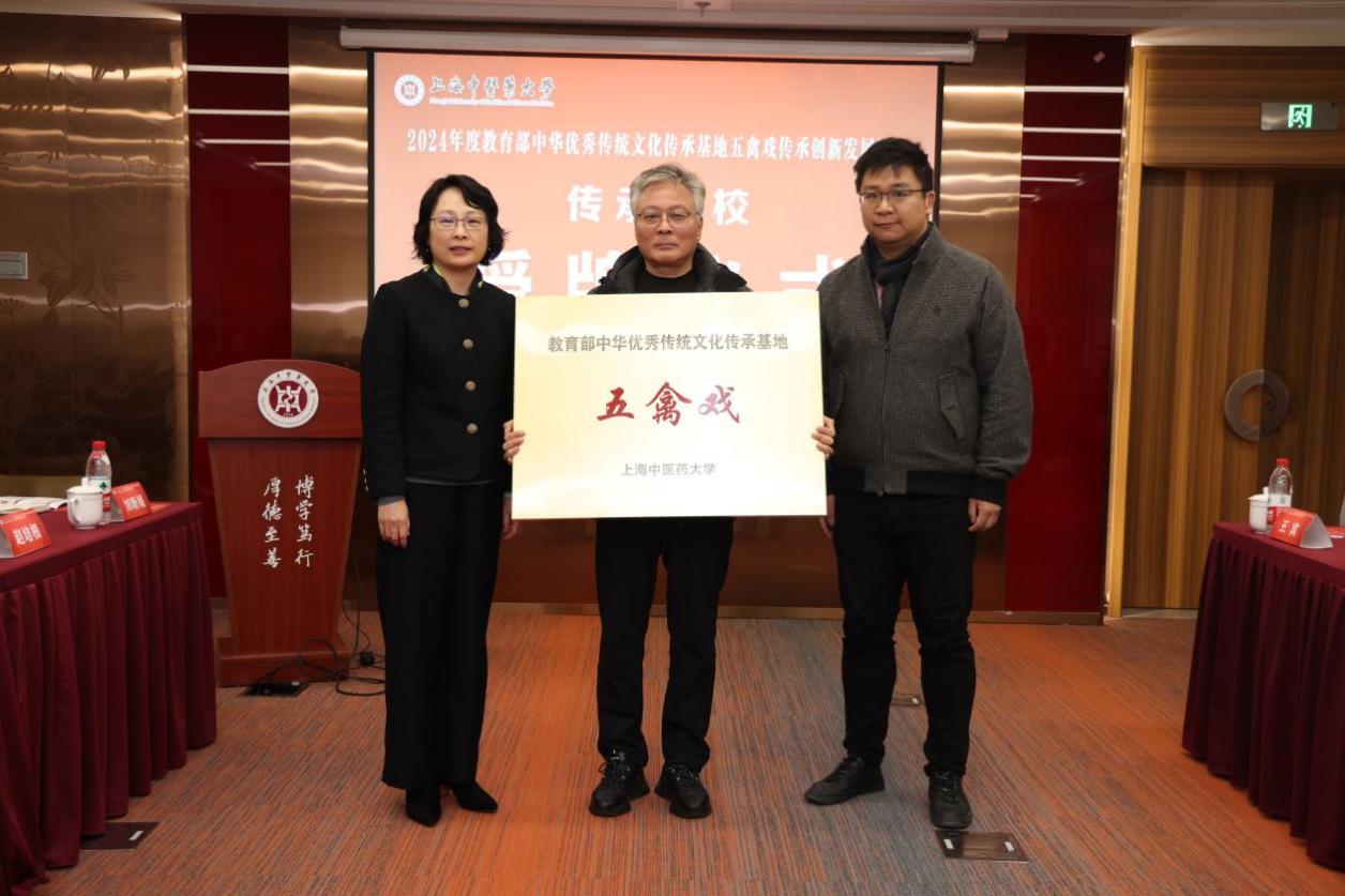 与会领导为作为教育部中华优秀传统文化传承基地五禽戏传承学校的菘泽学校、金桥镇中心小学和新学智培训学校授牌。