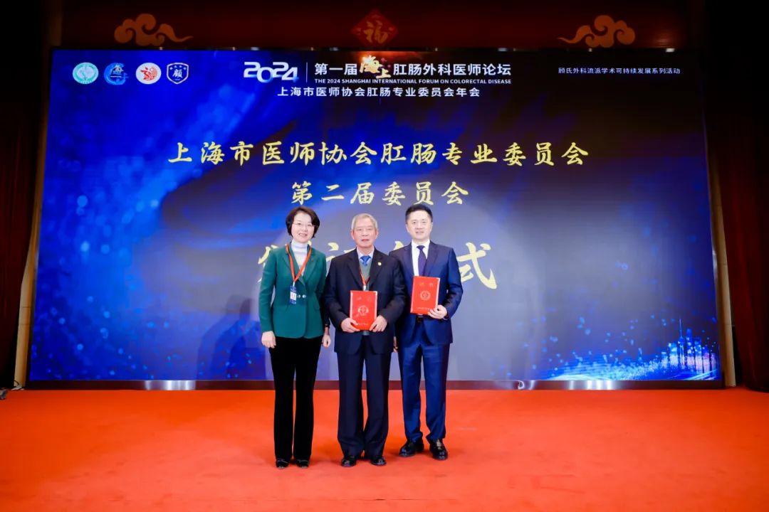 樊嘉、贝文向上海市医师协会肛肠专业委员会第二届委员会颁发聘书。