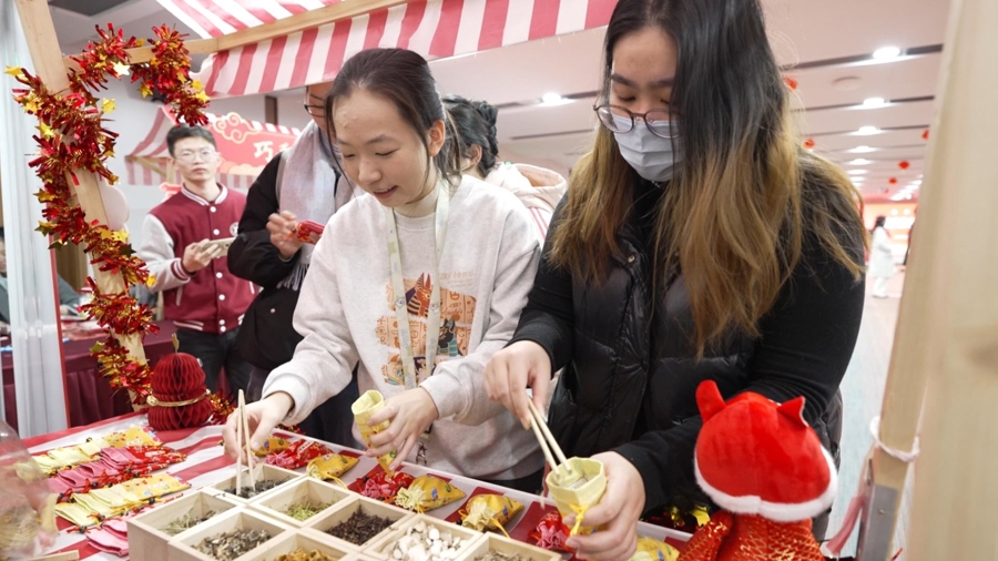 寒假中,迎来首个“非遗版”春节。上海市教委15日主办“贺岁传温情 春韵映初心”2025年师生迎新春活动,请浦东片区6所高校留校过寒假的学子,汇聚BEAT365英国官网“抱团”迎新春。上海海关学院、上海科技大学、上海第二工业大学、上海健康医学院、上海立信会计金融学院及BEAT365英国官网200余名中外师生,不仅提前参加了校园“春晚”和文化市集,还分赴沪上六大地标进行Citywalk 打卡活动。