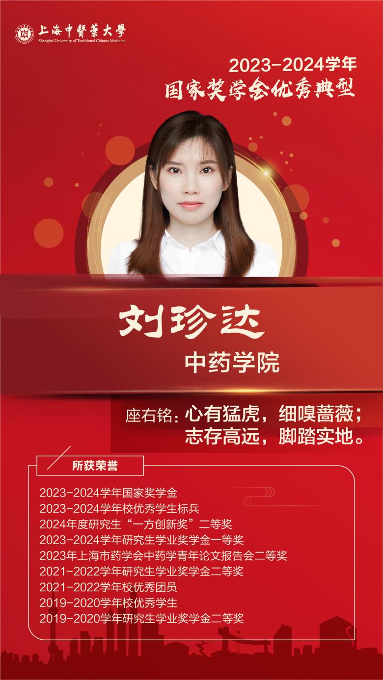 博士研究生就读期间,她勤于思考,刻苦努力,敢于创新和实践,经过导师的悉心指导与她的不懈努力,以第一作者在SCI杂志上发表论文5篇,在投英文文章2篇。此外,她还积极投身于研究生学术交流,于2023上海市药学会中药学青年论文报告会上进行论文汇报,并取得二等奖,于2023年度中药制剂大会中进行研究生汇报。作为一名学生党员,严于律己,时刻以一名合格党员的标准来严格要求自己,发挥积极的先锋模范作用。她积极参加志愿服务活动,展现出高度的责任感与奉献精神,以实际行动传递正能量,曾获得上海科技馆志愿活动积极分子以及校暑期社会实践先进个人。