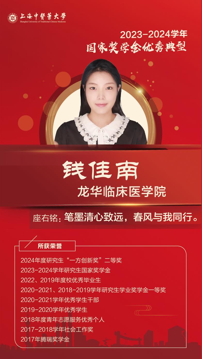 身为一名医学生,在学习上,他毫不懈怠,通过跟师抄方、科室学习等不断汲取中医精华,在专硕三年学习中均获得学校研究生学业奖学金一等奖,获得上海市优秀住院医师、上海市优秀毕业生(硕士)等荣誉。工作之余,他也积极参加市慈善基金举办的住院医师科普月月讲活动,为大家普及医学知识。在导师的带领下,他努力培养自己的学术科研能力,积极参与课题组国自然课题申报、多中心临床项目协调各个分中心等工作,目前以第一/共同第一作者发表核心期刊论文12篇,其中SCI论文8篇。他还总结临床科室轮转中发现的问题,积极进行专利申报,相关成果获得国家实用新型专利1项。