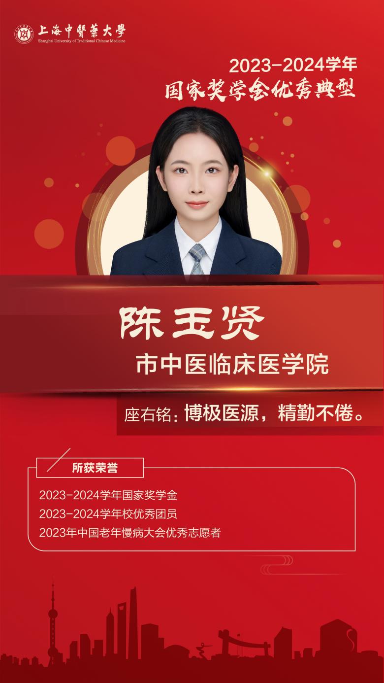 她始终以优秀党员标准严格要求自己。担任班级团支书以来,组织开展学雷锋、唱红歌、红色观影等富有特色的活动,带领班级团支部获校“五四红旗团支部”。在校期间以第一作者SCI论文一篇;参与发表CSCD论文两篇;二级以上学会论文集收录一篇。在校期间,她志愿时长数十小时。参与国家中医区域医疗中心共建现状调研及高质量发展策略研究,获校“求实杯”大学生社会实践项目三等奖。传承中华传统文化,注重身心平衡与健康,曾获校运动会八段锦展演比赛校级一等奖。