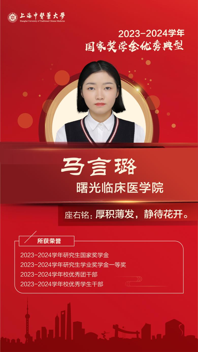 入学以来,参与了多个具有重要意义的课题研究,目前已发表两篇高质量学术文章。一篇发表在《北京中医药大学学报》,于2024年1月顺利见刊;另一篇在国际权威期刊Phytomedicine上发表。积极参加上海市研究生学术论坛,荣获优秀论文二等奖,踊跃参与经典诵读大赛,获得三等奖。荣获国家奖学金1次、研究生学业奖学金二等奖1次。每学期积极参加南京路上好八连志愿服务活动。作为研究生第七党支部组织委员,积极组织并认真开展上级党组织分配的各项任务。