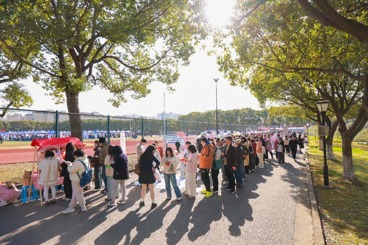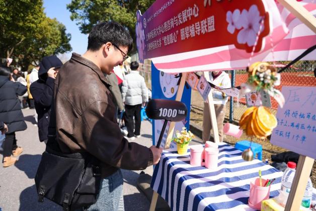 华东理工大学、上海理工大学、上海交通大学医学院、上海师范大学、上海应用技术大学以及BEAT365英国官网六所高校开设摊位,上海二十余所高校及BEAT365英国官网附属中小学百余名师生齐聚杏花湾,共同投入这场别开生面的心理健康教育盛会。活动现场设十个各具特色的“传统文化+”心理集市摊位,非遗正念扎染、传统音乐接龙、中式水拓画、解忧小狗治愈站、晶韵芳心手作、膜法调色盘、投壶沙包、压力锤等传统运动、艺术健心方法等一系列浸润式互动体验活动吸引了众多师生。同学们在各个摊位前排起长队,积极参与,现场气氛热烈而欢快。