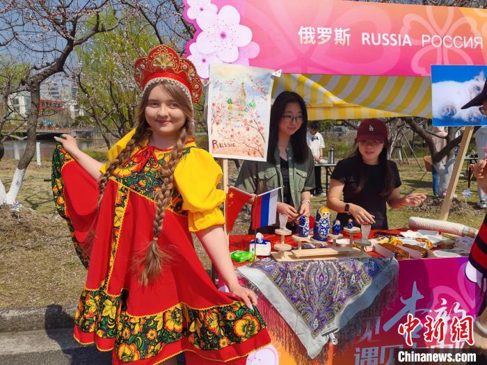 明媚春光下,繁茂的杏林中,中国的茶艺、日本的茶点、韩国的杏花簪、赞比亚的传统游戏、泰国的甜品和花水、津巴布韦的非洲鼓……自然景观与世界多元文化相映生辉,乐声、鼓声、欢笑声,校园中人声鼎沸。