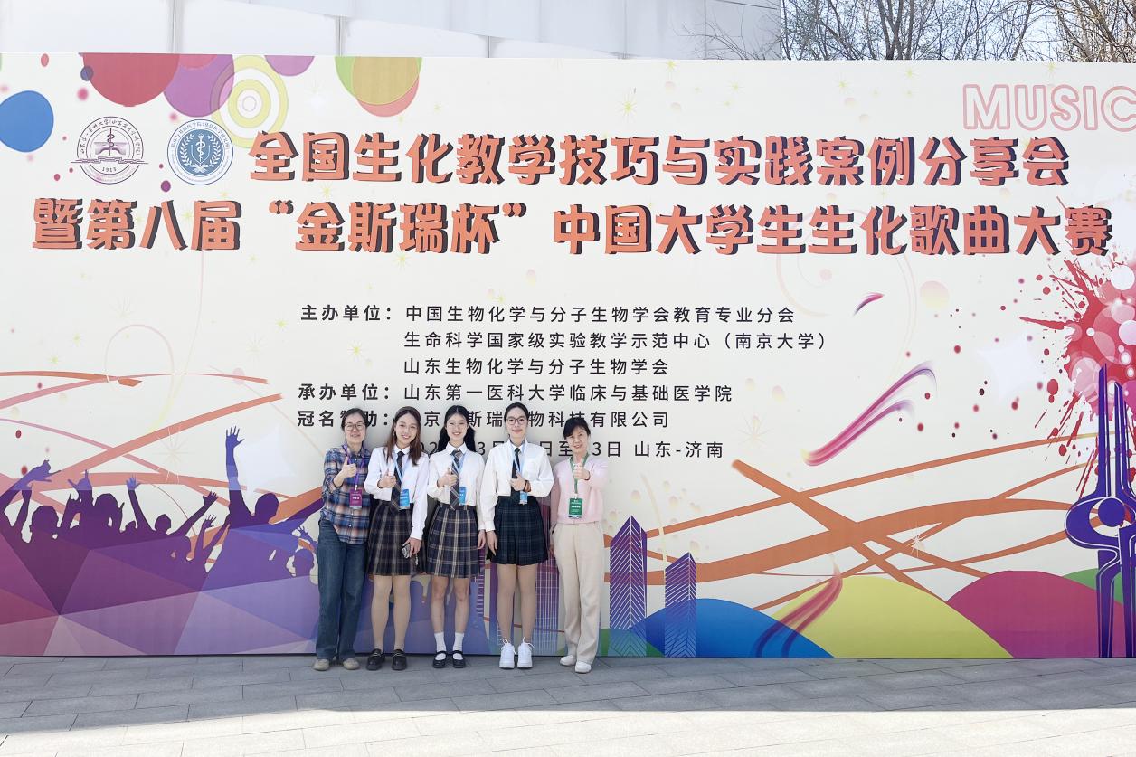 近日,由中国生物化学与分子生物学会教育专业分会主办的第八届“金斯瑞杯”中国大学生生化歌曲大赛在山东第一医科大学举行。中西医结合学院2023级中西医临床医学专业学生陈南楠、黄晨妍、张馨宁,在生化教研室教师康湘萍、胡海燕的带领下代表学校参加比赛,与来自全国68所高校的400余名参赛学生现场角逐,凭借改编作品《稍息立正站好肝胆生化报道》,以创意与专业并重的表现,荣获全国三等奖。