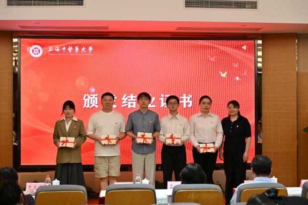 结业式伊始,中医学院2022级中医学(屠呦呦班)胡若璐作为班长对培训班进行总结,回顾培训历程,梳理学习收获与成长脉络。随后,龙华医院医务处张莹颖、岳阳中西医结合医院2021级中西医临床医学陈天佑、中西医结合学院病理学教研室许利荣、中药学院2022级中药学刘雍肠、康复医学院2021级康复物理治疗学李磊5位学员代表依次上台交流发言,介绍了他们扎根基层、科研报国、立德树人的先进事迹,通过榜样人物学习进一步激发预备党员报效祖国、服务人民的决心。