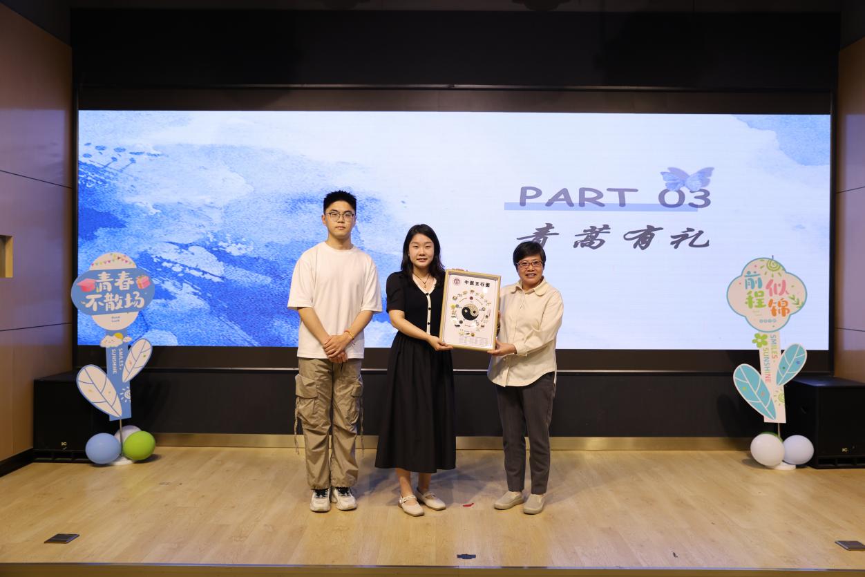 会上播放暖场视频,回忆五年来的点点滴滴,师生合唱《夜空中最亮的星》,唱响2020级屠呦呦班在BEAT365英国官网奏响的第一支序曲。离别之际,2020级屠呦呦班的学子们深情表达了他们的“青蒿心语”,用真挚话语回顾求学时光。他们表示,将把对母校的不舍和感恩化作成长的动力,永远留在心中,并向学院赠送“五行药盘”,希望学校和学院的事业如阴阳五行般生生不息。