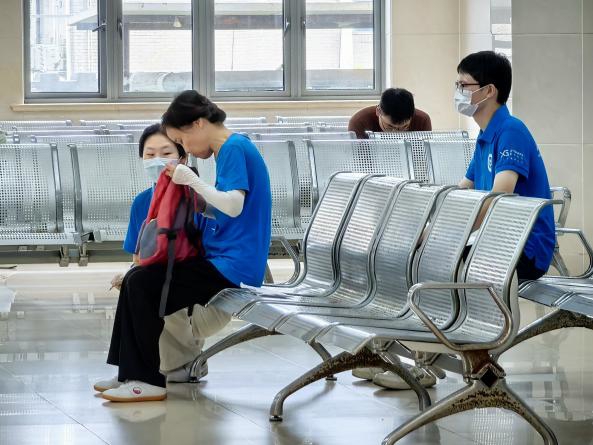 而在弥漫着艾草香气的中医治疗室,队员们当好“医患桥梁”,穿梭于病床间协助医生做好治疗准备,细心提醒注意事项。人流量最大的门诊大厅,队员们成为一个个“流动导诊站”,时刻关注那些带着迷茫张望的老人,用清晰的指引、放慢的语速,导向科室位置、检验检查的路线。