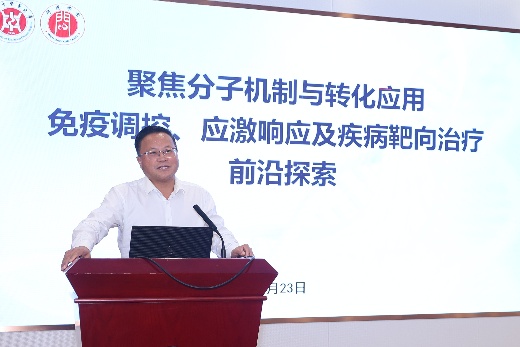 清华大学免疫学研究所董忠军研究员做专题报告《免疫缺陷病XLP-1致病机制及纳米抗体应用研究》,深入全面解析SLAM家族受体经典和非经典功能与意义。重庆医科大学李华兵教授的专题报告《RNA修饰与免疫》,围绕RNA修饰在转录后调控水平如何快速调节基因表达和细胞功能,进行了详细阐述。上海交通大学王宏林研究员以《首创小分子治疗慢性炎症的机制及转化》为题作报告,其研究团队的突破性创新成果新药CKBA分子正在开展白癜风、银屑病的临床研究。
