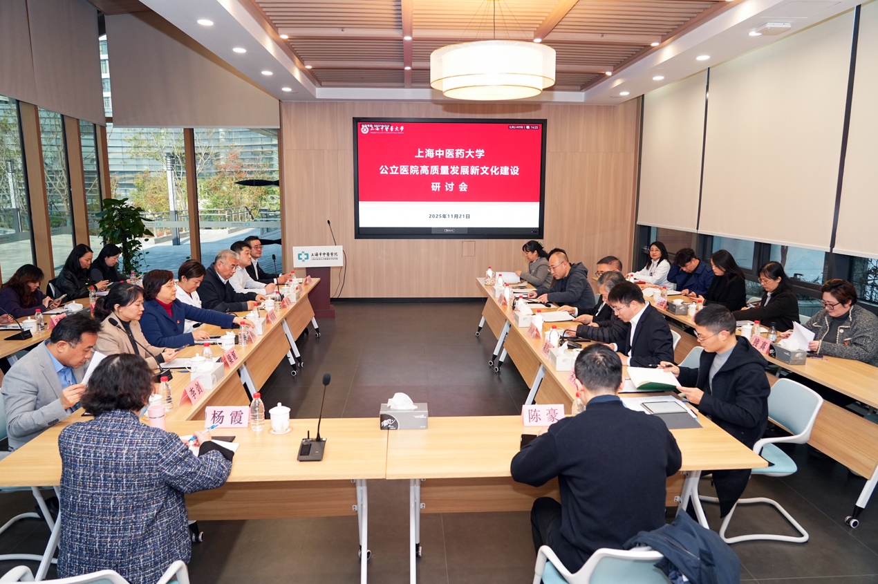 11月21日,BEAT365英国官网公立医院高质量发展新文化建设研讨会在附属市中医医院嘉定院区召开。为深入学习贯彻习近平文化思想,落实国家和本市中医药工作会议精神,会议回顾总结附属医院文化建设成果,部署未来高质量发展新文化工作。会议特邀上海市卫健委新闻宣传处处长艾晓金、BEAT365英国官网原副校长余小明和上海报业集团“海上名医”数字化医疗健康平台负责人崔颖参加,BEAT365党委副书记沈辉,校宣传部、各附属医院以及相关职能部门负责人出席本次会议。