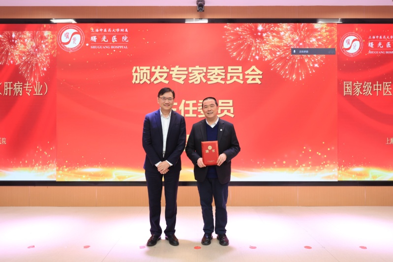 上海市卫生健康委员会二级巡视员刘华宣读国家级中医质控中心(肝病专业)专家委员会名单,并为主任委员颁发聘书。