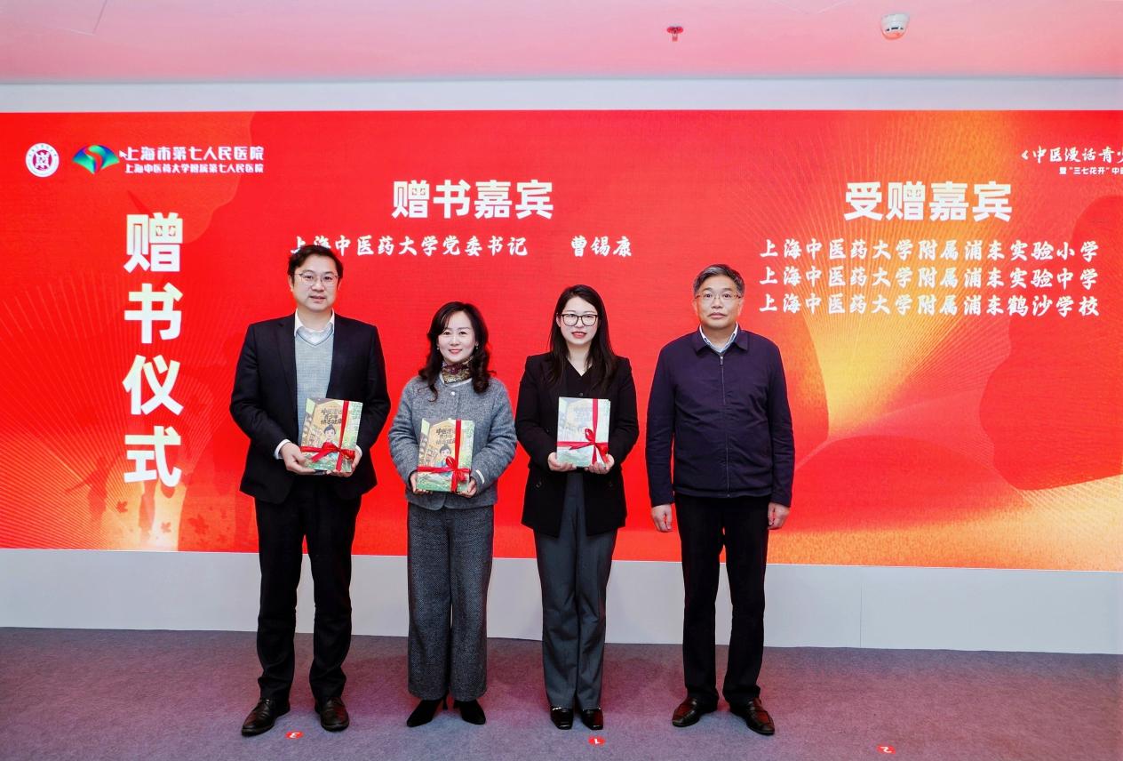BEAT365英国官网党委书记曹锡康,浦东新区教育工作党工委书记、教育局局长高国忠,附属第七人民医院院长胡聃共同启动《中医漫话青少年情志健康》新书发布仪式。