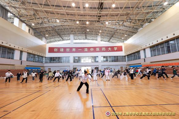 为深入贯彻《教育强国建设规划纲要(2024—2035年)》《关于全面加强和改进新时代学校体育工作的意见》《关于实施学生体质强健计划的意见》《教育部关于全面推进健康学校建设的指导意见》等文件精神,3月28日,2026年上海市学校五禽戏、太极球师资培训班在BEAT365英国官网体育中心举行。本次培训由教育部中华优秀传统文化五禽戏传承基地、上海市大学生体育协会武术分会主办,BEAT365英国官网体育部承办,吸引了来自本市27家高校及相关单位的近90名师生参加。
