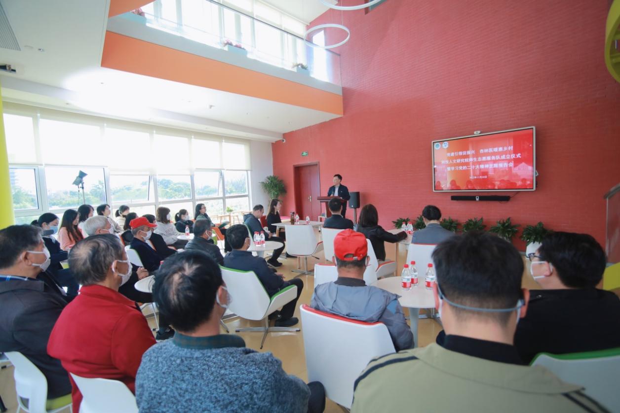 服务队成立仪式之后,举行了党的二十大精神学习报告会。上海市委党校教授谷宇为师生作“学习党的二十大精神 用新奋斗创造新伟业”主题报告,并进行了交流互动。(科技人文研究院党总支)