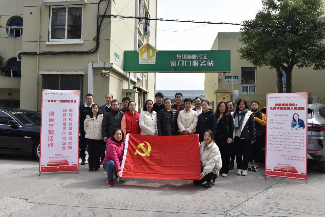 为全面贯彻习近平新时代中国特色社会主义思想,深入学习贯彻党的二十大精神,开好专题组织生活会,3月3日下午,国际教育学院党支部全体党员、发展对象和入党积极分子赴张江镇杨镇路居民区与该居民区党总支30余名党员联组专题学习党的二十大报告,并开展“学雷锋”为民健康咨询服务活动。