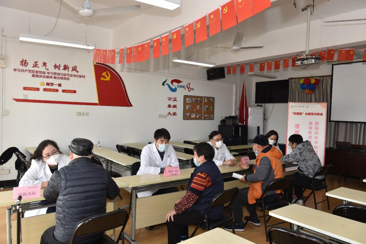 联组学习后,国际教育学院党支部的党员们为杨镇路居民区的党员、群众开展了健康咨询服务。