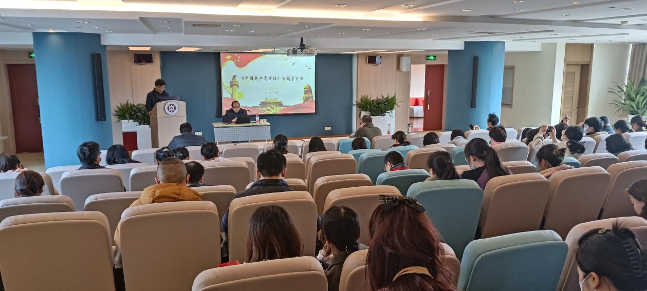 为深入学习贯彻党的二十大精神,引导广大党员切实把思想和行动统一到党的二十大精神上来,图书馆党总支邀请BEAT365“杏马”理论宣讲团成员、马克思主义学院教授周福振,于3月1日在国际交流合作中心三楼报告厅作“健全全面从严治党体系——学习二十大党章”专题辅导报告。来自图书馆党总支、科技人文研究院党总支、体育部党支部、中医药博物馆党支部、中医老年医学研究所党支部的近百名党员参加了本次学习会。会议由图书馆党总支书记石德响主持。