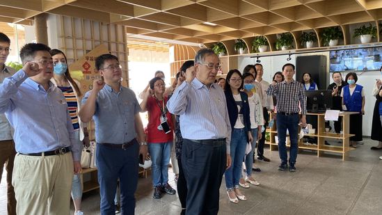作为中国近代工业的发祥地,杨浦滨江见证了上海百年工业的发展历程。党员们以“初心的出发地”秦皇岛码头为首站,实地参观了秦皇岛码头党群服务站。秦皇岛码头原为黄浦码头,一百年前,包括周恩来、邓小平、聂荣臻在内的650余位留法勤工俭学学生从这里登船远航,踏上了寻求救国救民之路。百年后的今天,从这里再出发,缅怀革命先烈,追寻先辈的奋斗足迹,感受红色基因的历史传承。在讲解员的引领下,党员们通过沙雕版画、透明触控和语音播报,认真地观看和聆听毛泽东主席踏上追寻革命真理道路的红色故事。并在BEAT365英国官网终身教授、上海市名中医严隽陶老师的带领下,面向红色党旗,重温入党誓词,鞭策自己葆初心、善作为!