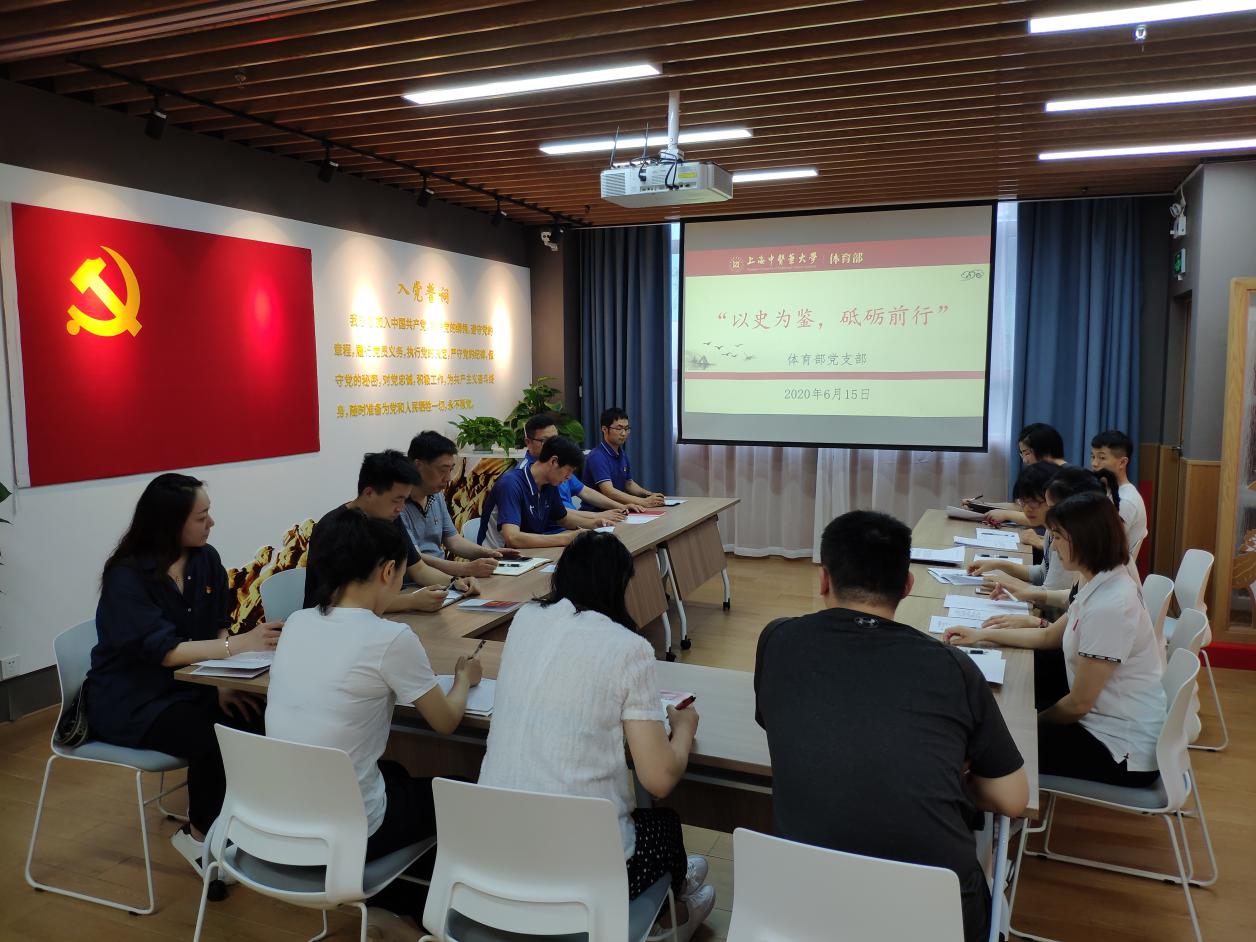 为深入推进落实BEAT365英国官网党委关于“四史”学习教育的部署要求,6月15日下午,校体育部党支部组织全体党员在学校党建服务中心开展“四史”学习教育专题党课。本次党课由体育部党支部书记龚博敏主持。