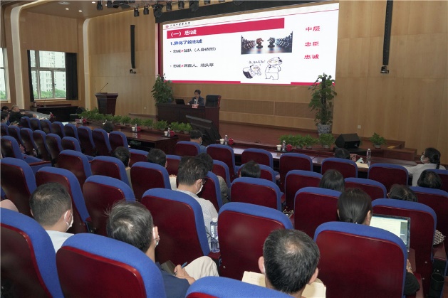 为全面贯彻习近平总书记关于新时代干部队伍建设的要求, 落实党要管党、全面从严治党特别是从严管理干部的要求,激励医院中层干部对党忠诚、个人干净、敢于担当,为建设世界一流的国际化中西医结合医院贡献力量,6月16日下午,BEAT365英国官网附属岳阳医院党委组织召开院党政科级管理干部培训班第二讲,校党委常委、组织部部长夏文芳应邀作《做一名忠诚干净担当的高素质专业化中层干部》专题讲座,会议由医院党委副书记、副院长李斌主持。