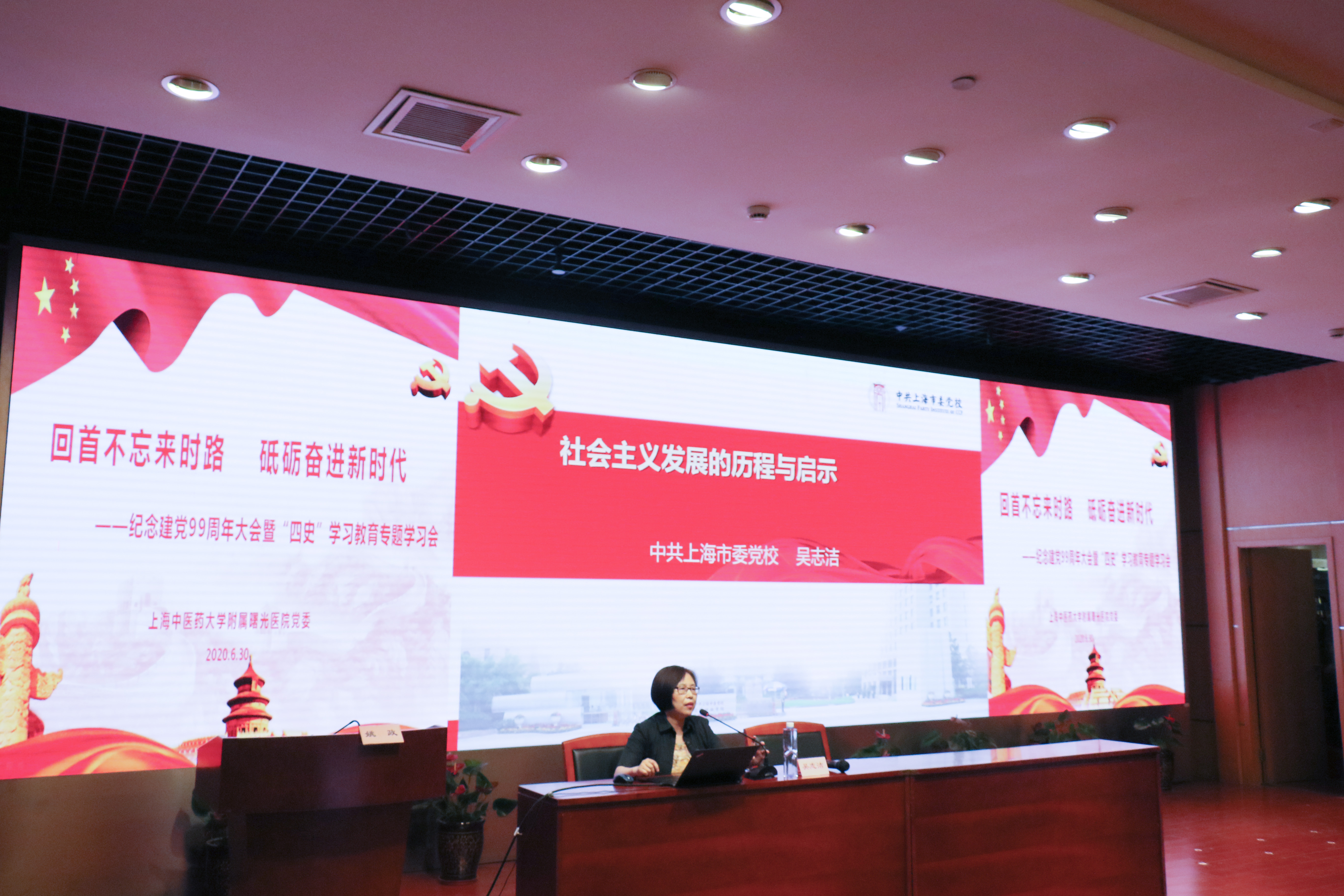 学习会上,中共上海市委党校党史党建教研部副主任、支部书记吴志洁教授、BEAT365英国官网副校长陈红专教授分别作《社会主义发展的历程和启示》《审时度势,共克时艰——参加全国“两会”之感受、感悟》专题讲座。曙光医院党政领导班子、党委委员、纪委委员、党支部书记、党团员代表、职能部门负责人、临床科室负责人等参加会议。大会由医院党委副书记、纪委书记姚政主持。