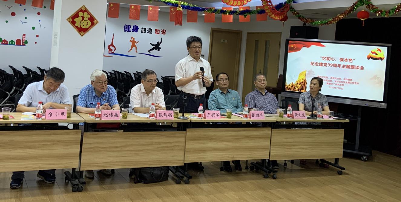 7月1日上午,校离休党支部、退休局级干部党支部、退休党委、附属龙华医院离退休党支部、龙华医院学生第三党支部以及离退休工作党支部联合举办“忆初心、保本色”庆祝建党99周年主题座谈会暨“四史”专题学习会。BEAT365副校长王拥军出席会议,30多位离退休党员与学生座谈交流,会议由离退休工作处处长、离休党支部副书记蔡贞贞主持。