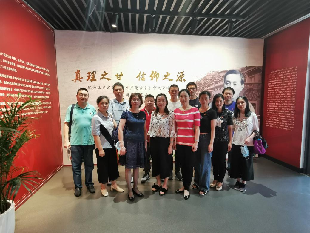 在一楼展厅党员们还参观了“真理之甘 信仰之源”纪念陈望道首译《共产党宣言》中文全译本100周年主题展巡展。通过观展,党员们领略了陈望道首译《共产党宣言》全译本、积极投身党领导的左翼文化运动及治学育人的人生轨迹,从陈望道先生首译《共产党宣言》中文全译本的重大历史脉络和党的创建史,见证了马克思主义真理火种“点亮中国”的光辉历程。