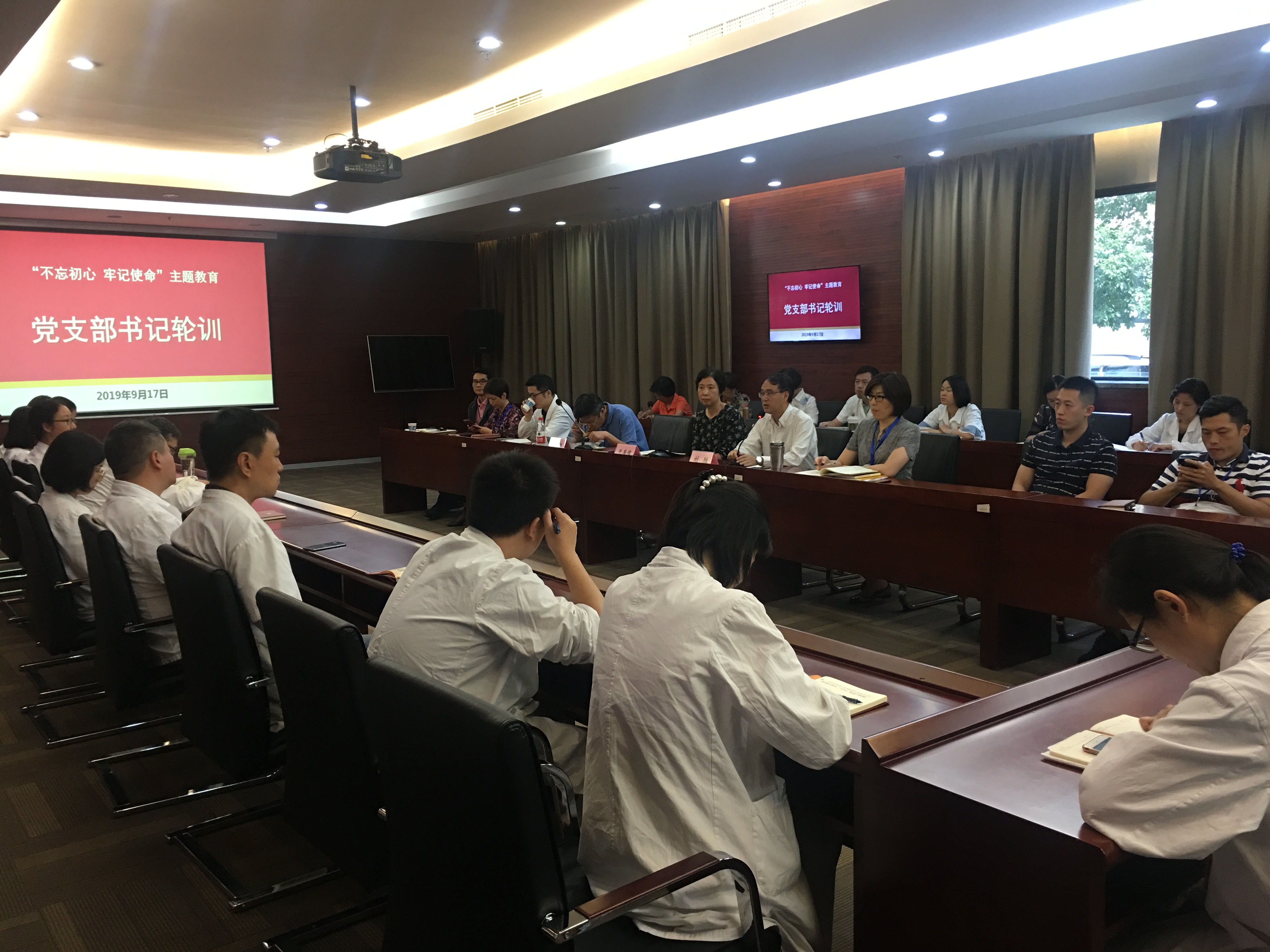 抓党支部书记培训是保证主题教育在党员中全覆盖的关键环节。夏文芳在培训会上详细介绍了学校主题方案和各项要求。学校主题教育领导小组办公室做好前期准备,制定好主题教育教案,让各项工作要求一目了然。针对附属医院比较分散,党支部书记主要为医护人员的特点,主题教育领导小组办公室送学到医院,充分利用中午的时间进行培训,方便了医院党支部书记的学习。