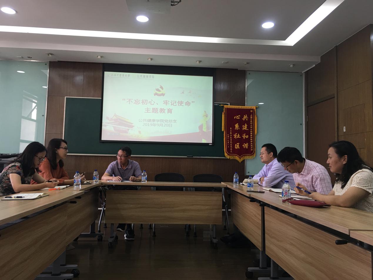 9月20日下午,校党委“不忘初心、牢记使命”主题教育第四指导组组长夏国荣带队到公共健康学院检查指导工作,公共健康学院领导班子全体成员、组织员参加会议。