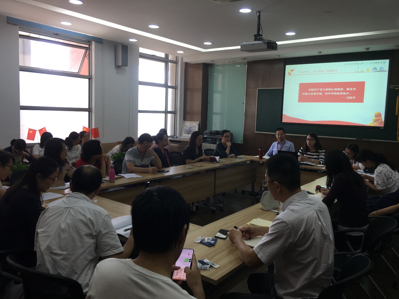 为扎实推进“不忘初心、牢记使命”主题教育工作,9月24日下午,公共健康学院党总支面向全体教职工开展集中学习,包括党员、民主党派、共青团员、群众在内共30名教师、研究人员和管理人员参加了本次学习。