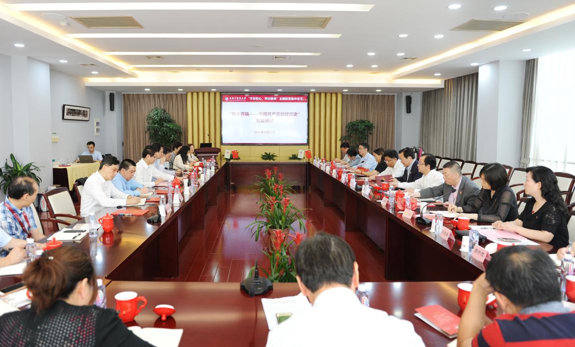 参观结束后,校领导、中层干部代表及曙光医院党政领导班子成员举行集中研讨。校党委副书记、副校长朱惠蓉主持研讨。校党委常委、总会计师徐瑶玲,校党委常委、组织部部长夏文芳,曙光医院党委副书记、院长周华,曙光医院党委副书记姚政作交流发言,分别介绍本次参观和个人自学党史、新中国史的体会。其他与会人员交流了参观心得。大家认为,今天的参观非常震撼,让我们进一步认识到中国共产党不愧为领导中国革命、建设、改革事业的核心力量,不愧为民族复兴伟大事业的主心骨和领路人,同时要以对党对人民对事业高度负责的精神抓好主题教育,把初心使命当成党员干部锐意进取的自觉行动。