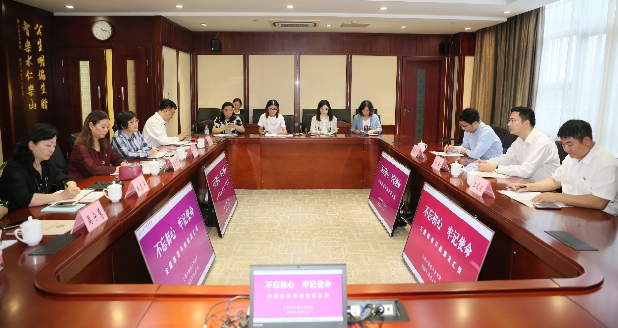 随后,李昕专题对BEAT365“不忘初心、牢记使命”主题教育情况进行调研、座谈。市教卫工作党委宣传处副处长江鸿波、组织干部处副处长王精明陪同调研。BEAT365党委书记曹锡康,党委副书记、副校长朱惠蓉,校主题教育领导小组办公室成员以及指导组成员参加会议。
