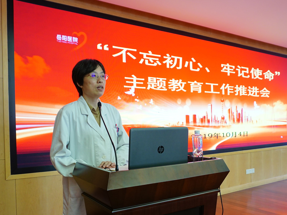 郑莉介绍了医院主题教育近期工作开展情况,严格按照上级党委要求,全面扎实推进主题教育走深走实走心。她指出开展“不忘初心、牢记使命”主题教育,要牢牢把握“守初心、担使命,找差距、抓落实”的总要求,将其贯穿于主题教育全过程,明确方向,积极推进,确保这次主题教育取得扎扎实实的成效。深入把握主题教育的五个具体目标:理论学习有收获、思想政治受洗礼、干事创业敢担当、为民服务解难题、清正廉洁作表率。她强调要把学习教育、调查研究、检视问题、整改落实这四个方法步骤贯穿全过程,特别是要把“改”字贯穿始终,立查立改、即知即改,能够当下改的,明确时限和要求,按期整改到位;一时解决不了的,要盯住不放,通过不断深化认识、增强自觉,明确阶段目标,持续整改。(岳阳医院)