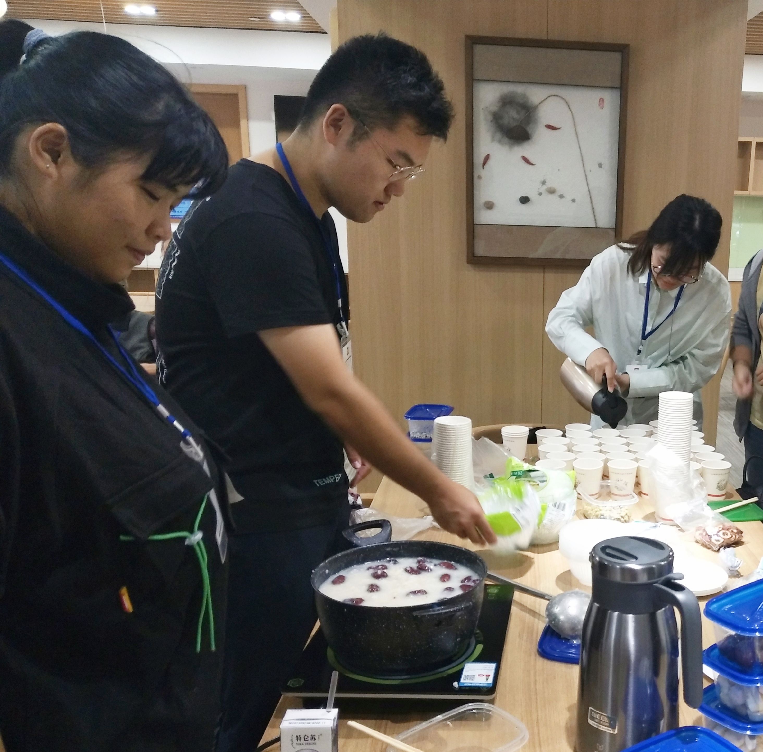 其后,一碗碗现场熬制的山药百合红枣粥被端送给居民品尝,学生党员阮航向大家分享这道营养又美味的粥品药膳的熬制方法,现场好评不断。学生们还向积极参与活动的居民赠送了自制的香囊。