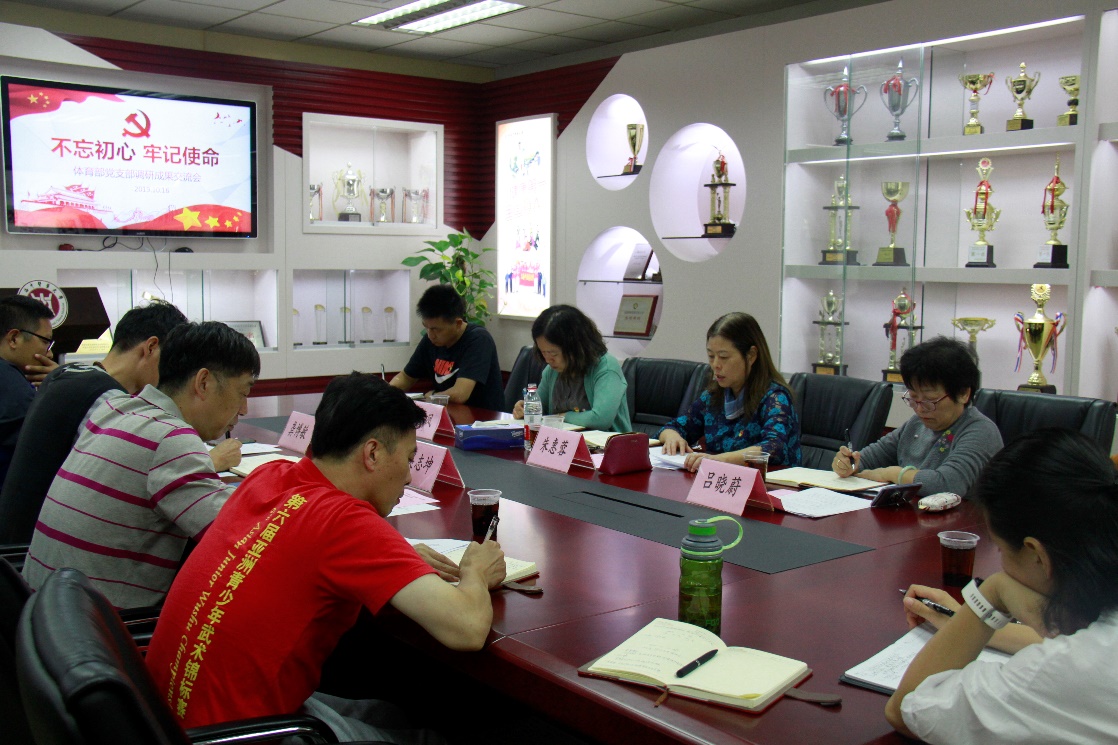 10月16日中午,体育部党支部在体育部会议室召开“不忘初心、牢记使命”主题教育调研成果交流会。校党委副书记、副校长朱惠蓉,校主题教育第六指导组组长吕晓蔚、组员张海风,体育部党支部书记、副主任龚博敏,体育部党支部副书记、主任吴志坤及部分体育部党员代表参加会议。会议由龚博敏主持。