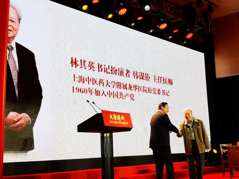 事实上,有一些老党员教师永远无法参加授课了。在首任校党委书记林其英等建校初期创业者奋斗经历的情景再现中,现任校长徐建光教授介绍,出演“林书记”的正是书记当年的秘书——今年已经82岁高龄的BEAT365英国官网附属龙华医院主任医师、原党委书记韩谋钜,“我知道您在林书记身边工作了很长一段时间,今天演了一回“老书记”,最想说的是什么?”